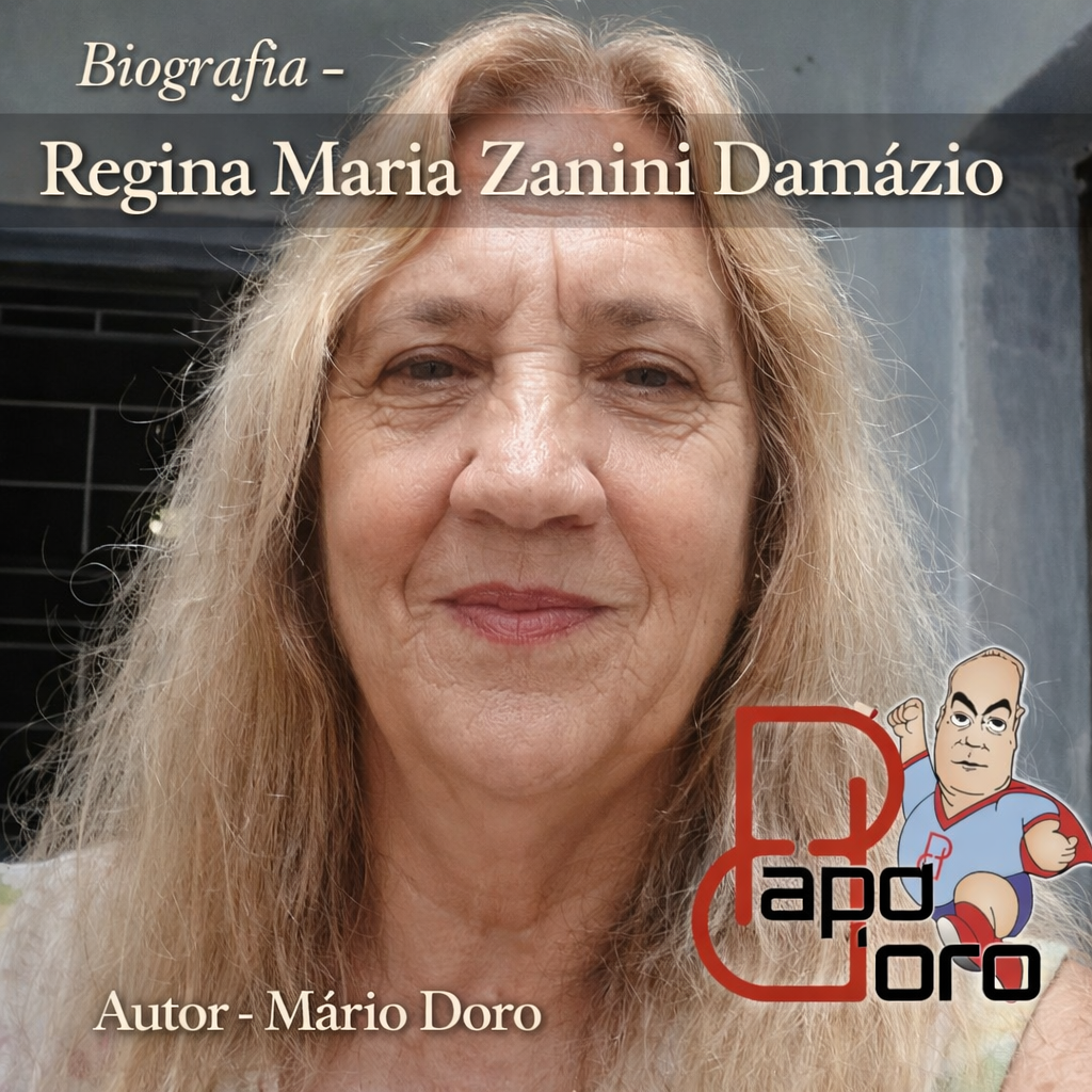 Filha de Aurélio Zanini e Lourdes Garcia Zanini, Regina Maria Zanini Damázio nasceu em Bragança Paulista, em 1958 — um ano simbólico em que Gabriela, Cravo e Canela ganhava o mundo pelas mãos de Jorge Amado, como se a literatura, desde então, já soprasse seu destino.