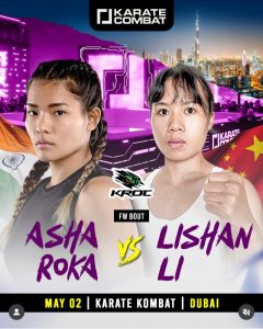 Asha “Knockout Queen” Roka é campeã nacional de boxe na Índia e seu ‘registro’ no boxe profissional é de 8-0-1. Já no MMA ela tem um ‘histórico’ de 4-2-0. Sua oponente Lishan Li mantêm 2-0-0 no ‘currículo’ de MMA, além de um ‘cartel’ em lutas de “trocação” em ‘promoções’ do porte do ‘Wu Lin Feng’ ( ou, simplesmente, “WLF” ), “JCK” e ‘K-1’.
