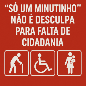 Respeitar as vagas especiais não é favor, é obrigação. Um “só um minutinho” pode significar um enorme transtorno para quem realmente precisa. O espaço é especial porque a necessidade é especial.